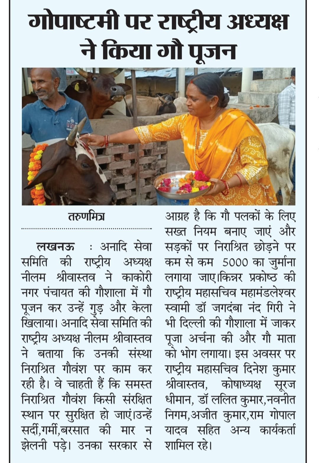 अनादि सेवा समिति की टीम बीमार,घायल,कमजोर गौवंशों के रेस्क्यू के लिए हमेशा तैयार रहती है और सूचना मिलने पर घटना स्थल पर पहुंच कर उचित समाधान निकालती है।