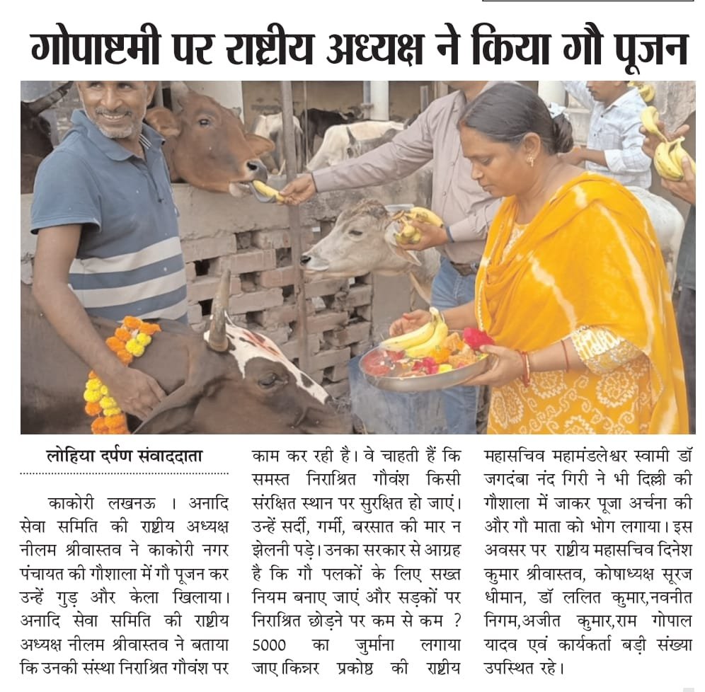 अनादि सेवा समिति की टीम बीमार,घायल,कमजोर गौवंशों के रेस्क्यू के लिए हमेशा तैयार रहती है और सूचना मिलने पर घटना स्थल पर पहुंच कर उचित समाधान निकालती है।