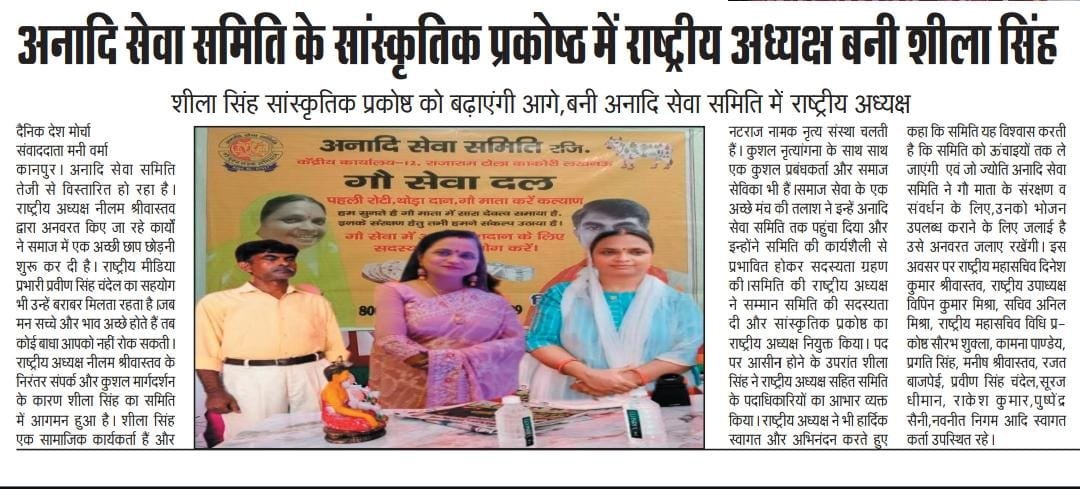 अनादि सेवा समिति आने वाले दिनों में समिति के सदस्यों को सदस्यता शुल्क पर गरीब कन्या विवाह, निःशुल्क टेंट की व्यवस्था,निःशुल्क मैरिज लॉन,मैरिज हॉल की व्यवस्था करने पर काम कर रही है।गौ मुक्त सड़क अभियान